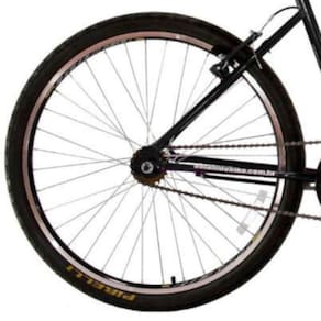Características: - Quadro, Garfo, Guidão e Canote do Selim em Aço Carbono - Engrenagem 46D em Aço - Pneus e Câmaras de Ar tamanho 26 - Freio V-Brake em Nylon - Maçaneta de Freio em Nylon - Manopla Plástica - Movimento Central e de Direção com Esferas - Pedal Plástico - Pedivela Monobloco - Aros Aero em Alumínio - Cubo de Aço - Raios Fino Zincado - Selim Personalizado em RVS - Idade Recomendada Adulto