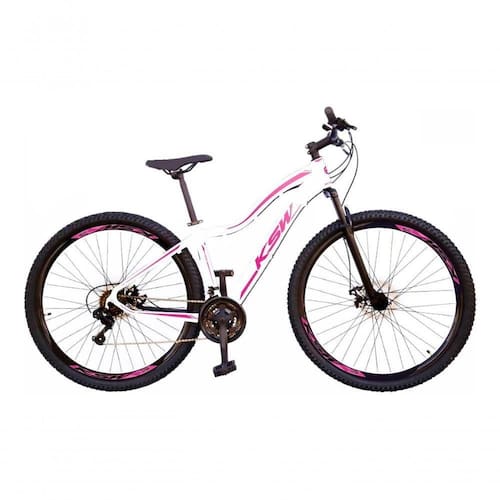 Bike Feminina aro 29, com quadro Ksw Mwza nova na caixa a pronta , produto com ótima qualidade e acabamento, possui 27 marchas com sistema de alavancas rapid fire que a cada clique uma marcha é trocada, garfo com suspensão, sistema de freio a disco mecânico. Bicicleta pré montada, vai precisar apenas fixar a roda dianteira, guidão, selim e pedais. Segue abaixo características da bike: