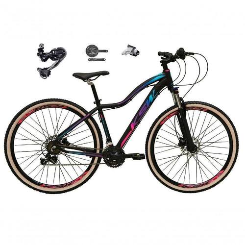 Bike Feminina aro 29, com quadro ksw mwza, nova na caixa a pronta , produto com ótima qualidade e acabamento, possui 27 marchas com sistema de alavancas rapid fire que a cada clique uma marcha é trocada, câmbio dianteiro shimano altus e traseiro shimano deore M592, garfo com suspensão e sistema de trava para melhor performance, sistema de freio a disco hidráulico, pneus com cravo baixo para uso em terra e asfalto. Bicicleta pré montada, vai precisar apenas fixar a roda dianteira, guidão, selim e pedais. Segue abaixo características da bike: