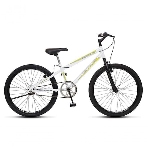 Bicicleta Force 1 Aro 24 Sem Marchas Freios V-brake Branco Características: Marca: Colli Modelo: Force One Idade recomendada: a partir de 12 anos. Peso suportado: 100 kg Tamanho quadro: 13 Aro 24 aero 36F dianteiro montado Canote reto colli zincado Corrente grossa 1/2x1/8 Freio V-brake nylon Garfo 24 colli pintado Manopla diplomata Movimento direcao comum com colar Pedivela monobloco 165x15mm Quadro 24 colli pintado Selim pvc Aro 24 aero 36F traseiro s/ espacador montado Coroa 46d Descanso lateral Aro 24 Guidão downhill aço expandido 580mm com sup. soldado Maçaneta de nylon 26 Movimento central 45mm com colar Pedal 1/2 Pneu Roda livre 1v 18d Conteúdo da Embalagem: Quadro e garfo com roda traseira, roda dianteira e guidão. Kit de acessórios: kit selim, canote, pedais e manual proprietário.