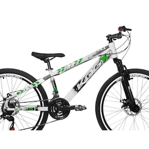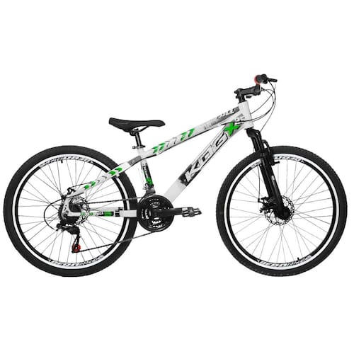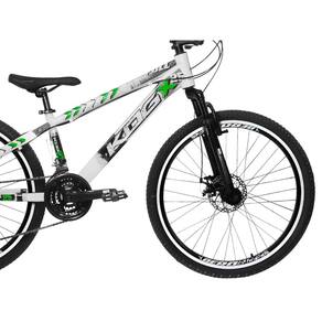 Bicicleta Freeride Aro 26 Flay KOG 18v Freio a Disco Suspensão Dianteira Branco Verde