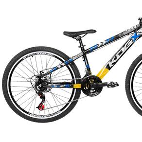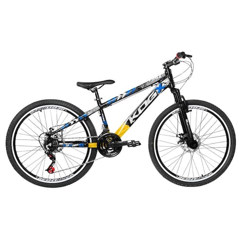 Bicicleta Freeride Aro 26 Flay KOG 18v Freio a Disco Suspensão Dianteira Preto Amarelo Azul