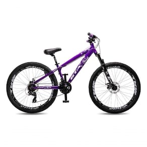 Tamanho: Tamanho Único | Aro: 26 | Marchas: 24 | Material do Quadro: Aluminio | Suspensão: Dianteira Cor: Roxo/Branco