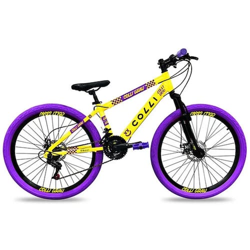Bicicleta Grau Aro 26 Freio a Disco Quadro 13,5 Polegadas Colli A Bicicleta Colli Grau, Aro 26, Freio a Disco, Quadro 13,5 Polegadas, Amarelo traz mais diversão para os jovens. O produto possui aro 26 e o quadro tem 13,5 polegadas e é fabricado em aço carbono, possuindo muita resistência e durabilidade para andar. Seu freio a disco permite que a pessoa pedale com mais segurança e tranquilidade. Além disso, o seu câmbio com 21 velocidades facilita a pedalada nas subidas e nas descidas. A bicicleta ainda conta com pedais Free Sport, selim com carrinho e manoplas MTB. Deixe as brincadeiras dos seus filhos mais divertida com a Bicicleta Grau da Colli. Não perca essa oportunidade e garanta já a sua!