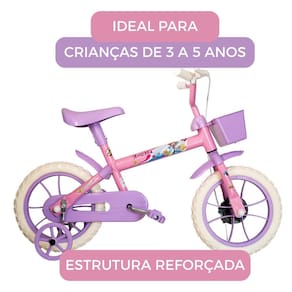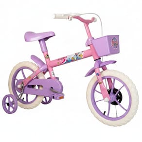 Bicicleta Infantil Aro 12 Com Rodinhas Lolli Rosa e Lilás Samy