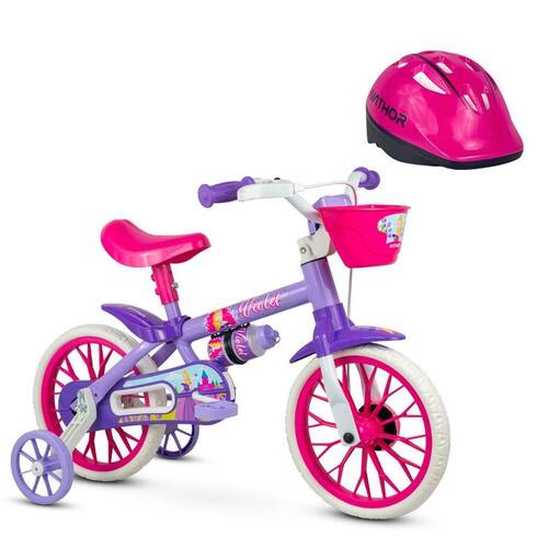 Bicicleta infantil aro 12 violet e capacete rosa - nathor