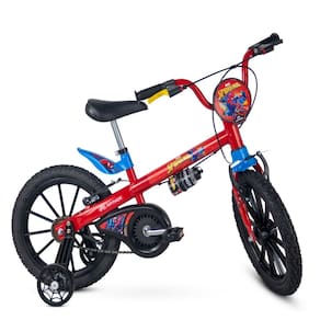 A bicicleta aro 16 Nathor possui modelos com aro em ABS e em alumínio. O limitador de giro evita que o guidão vire completamente, proporcionando mais segurança e preservando o freio. Para facilitar o aprendizado e a identificação do freio traseiro, a maçaneta amarela ganha destaque e indica o acionamento ideal na hora da frenagem. As rodinhas laterais permitem o desenvolvimento da criança na fase de aprendizado, estimulando o equilíbrio e a autonomia. A aro 16 tem pneus com câmara, quadro em aço carbono e garrafinha. Indicada para crianças a partir de 5 anos ou com altura entre 1,10 m e 1,20 m.