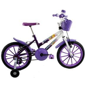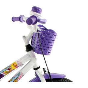 Bicicleta Feminina Infantil Aro 16, modelo Milla, com cestinha, cor Branco com Violeta - Dalannio Bike