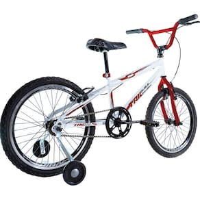 O guidão estilo cross com suporte em alumínio dá firmeza na pilotagem, enquanto os freios V-Brake dianteiro e traseiro garantem paradas rápidas e seguras. E para completar, as rodinhas laterais acompanham a fase de adaptação com equilíbrio e apoio, permitindo que seu filho se divirta com mais liberdade — e pais, com muito mais tranquilidade.