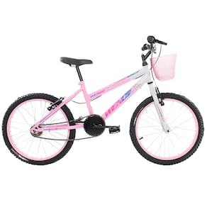 Bicicleta Infantil Aro 20 Feminina Com Rodinha Lateral e Cesta Freios V-Brake Wendy Para Meninas Rosa Branco