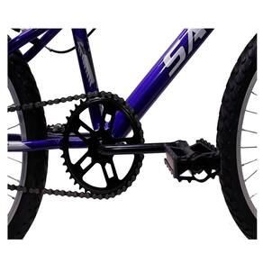 Equipada com rodas aro 20, a bicicleta oferece estabilidade e segurança, sendo ideal para terrenos mais variados, incluindo ruas pavimentadas e trilhas leves. O pneu de borracha com cravos proporciona boa aderência, garantindo maior controle em diferentes tipos de solo.