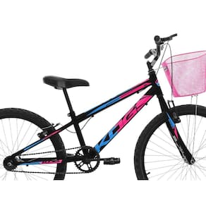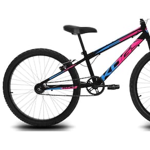 Quadro e Garfo fabricados em aço carbono; Aros fabricados em alumínio; Adesivos em alto brilho; Freios V-Brake; Raios: Aço 2.0x185mm; Manopla em borracha; Garfo: Standard rígido; Movimento central: 4,5 cm; Caixa de direção: Standard; Canote do selim: Aço carbono; Pedivela: Monobloco, 165mm; Pneus: 24x1,95 Faixa Branca; Coroa dianteira: Aço carbono; Peso suportado: Até 85 kg;