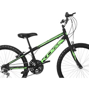 Quadro e Garfo fabricados em aço carbono; Aros fabricados em alumínio; Adesivos em alto brilho; 18 Marchas; Câmbio dianteiro: Verificar Disponibilidade; Câmbio traseiro: Verificar Disponibilidade; Tipo de trocador de marchas: Luvinha; Freios V-Brake; Raios: Aço 2.0x185mm; Manopla em borracha; Garfo: Standard rígido; Movimento central: 4,5 cm; Caixa de direção: Standard; Canote do selim: Aço carbono; Pedivela: Monobloco, 165mm; Pneus: 24x1,95 Faixa Branca; Coroa dianteira: Tripla 28x38x48 dentes, aço carbono, IMPORTARDO; Peso suportado: Até 85 kg;