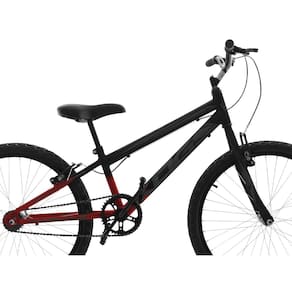 Quadro e Garfo fabricados em aço carbono; Aros fabricados em alumínio; Adesivos em alto brilho; Freios V-Brake; Raios: Aço 2.0x185mm; Manopla em borracha; Garfo: Standard rígido; Movimento central: 4,5 cm; Caixa de direção: Standard; Canote do selim: Aço carbono; Pedivela: Monobloco, 165mm; Pneus: 24x1,95 Faixa Branca; Coroa dianteira: Aço carbono; Peso suportado: Até 85 kg;