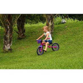 Diversão sobre 2 rodas sem pedal!Como não possui pedais nem rodinhas laterais, estimula as crianças a desenvolver o equilíbrio estático e dinâmico. Devido ao seu centro de gravidade baixo permite fácil acesso dos pés ao chão, o que transmite confiança e gera progresso em ritmo próprio.Características:- Quadro, Guidão e Garfo em Aço Carbono - Pneus em EVA- Cestinha- Mesa de Direção em Nylon Reforçado- Selim em PU- Abraçadeira do Selim em Alumínio- Freio traseiro- Guidão com Limitador de Giro- Trava de SegurançaEspecificações:Idade recomendada: 2 a 5 anos;Altura máxima recomendada da criança: 100 cm;Peso máximo recomendado da criança: 21 kg;Tamanho da roda: Aro 12;Dimensões do produto: ( C x A x L ): 86 x 55 x 43 cm;Peso: 2,780 kg;O produto requer montagem. Manual acompanha o produto.