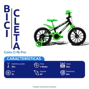 O passeio da criançada vai ficar muito mais seguro, estiloso e divertido com a Bicicleta Cairu C-16 Pro! Ideal para os pequenos aventureiros, o modelo possui aro 16, proporcionando uma pedalada confortável e ajustada ao tamanho da criança. Confira mais detalhes: