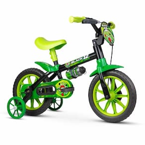 BICICLETA INFANTIL COM RODINHAS - ARO 12 - BLACK 12 - NATHOR: perfeita para criança que tem muita vontade de começar a pedalar. Indicada para crianças a partir de 3 anos ou com altura entre 90cm e 1m. É muito resistente e segurança. A Bicicleta Nathor Aro 12 Black 12 é equipada com os melhores itens de segurança e conforto para crianças. Com o limitador de giro, a criança garante mais equilíbrio e segurança ao pedalar. A regulagem de ângulo do guidão e da altura do selim permitem que a postura do ciclista se mantenha correta, além de possibilitar que a bicicleta seja usada por mais tempo - acompanhando o crescimento. O movimento central avançado facilita o pedalar, estimulando o aprendizado. A Bicicleta Infantil Black 12 também tem uma relação de transmissão que foi desenvolvida para que a velocidade que a criança atinge pedalando seja a mesma de um adulto andando; ou seja: os pais conseguem acompanhar a brincadeira com tranquilidade, garantindo ainda mais segurança durante a diversão! CARACTERÍSTICAS: - Quadro, garfo e guidão em aço carbono - Limitador de giro do guidão - Freio a tambor - Regulagem de ângulo do guidão e da altura do selim - Pneus em E.V.A - Garrafinha e cestinha ou plaquinha - Mesa de direção em nylon reforçado INFORMAÇÕES: • Produto: Bicicleta Black 12 • Marca: Nathor • Tamanho da roda: 12 • Tipo: Bicicleta Infantil com Rodinhas • Altura máxima recomendada: 90 cm a 100 cm • Peso máximo recomendado: 21 kg • Dimensões do produto (CxAxL): 82cm x 55cm x 50cm • Idade recomendada: para crianças a partir de 3 anos de idade ESPECIFICAÇÕES - REF: 100010160035 - Cores predominantes: Preto e Verde - Certificado: CE-BI/INNAC 00407-01A NM 301/2004 BENEFÍCIOS DE ANDAR DE BICICLETA - Fortalece a massa óssea, articulações e músculos - Reduz a ansiedade e o estresse - Estimula a atenção e o senso de direção e noção de espaço - Estimula o equilíbrio e a coordenação motora - Combate a obesidade e aumenta a resistência física - Colabora com a autoestima e a autoconfiança - Estimula a criatividade e imaginação AVISO: As imagens são meramente ilustrativas. As cores e estampas dos produtos podem ter variações. As informações são de responsabilidade do fabricante ou fornecedor. ATENÇÃO Comprar Bicicleta Black 12 Infantil - Aro 12 - Nathor ficou fácil. Aproveite nossas condições de pagamento. Oferta válida por tempo limitado ou enquanto durarem os estoques.