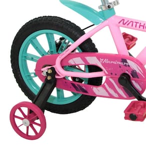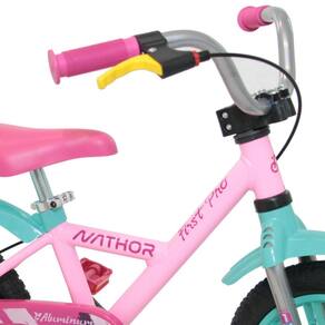 Bicicleta Aro 14 Infantil Feminina FirstPro Atenção: - A FirstPro é ideal para crianças com idade entre 4 a 6 anos - Altura recomendada: entre 95cm e 110 cm - Peso máximo recomendado: 25kg A First Pro Aro 14 é um novo conceito de bicicletas infantis. Ela é feita de alumínio, com freio a disco e rolamentos em todos os movimentos, assim como uma bicicleta adulta. A bicicleta possui ainda uma maçaneta de freio com um sistema que proporciona facilidade na regulagem do freio e que prioriza a segurança da criança. A roda lateral possui altura ajustável. Com um simples ajuste, a criança é estimulada ao melhor desenvolvimento do equilíbrio. Além dos benefícios, a primeira bicicleta infantil estará disponível em cores modernas e com adesivos personalizados. Algumas Características: - Freio a disco - Quadro, guidão e garfo em alumínio - Mesa Head-Set - Aro em ABS - Pneus e câmara de borracha - Eixo dianteiro e traseiro com rolamentos - Selim em PU - Abraçadeira do Selim em Alumínio - Maçaneta em Nylon reforçado e com ajuste de freio - Guidão com limitador de giro - Trava de segurança - Roda Lateral com ajuste de altura - Idade mínima recomendada: A partir de 4 a 6 anos - Peso da bicicleta: 7kg - Peso máximo recomendado: 25kg - Altura máxima recomendada: 95 - 110 cm