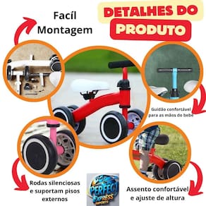 Perfeita para crianças pequenas que estão começando a desenvolver equilíbrio e coordenação motora, essa bicicleta andador sem pedal oferece estabilidade total graças às suas 4 rodas resistentes.