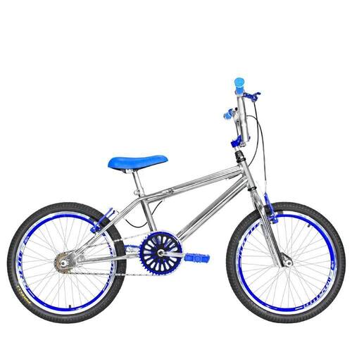 Bicicleta Infantil Masculina Aro 20 Cross Cromada Cor Cromada E Azul