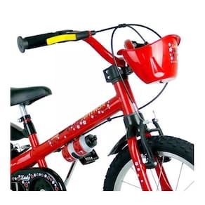 A bicicleta Bella Aro 16 da Nathor vem com um diferencial que é o Aro em alumínio Possui limitador de giro do guidão, importante característica que evita com que guidão dê uma volta completa e danifique o freio, além de preservar a integridade física da criança. Com freios V-Brake e maçaneta em Nylon, garante uma ótima rigidez, fazendo com que a frenagem seja mais eciente por não sofrer deformação. Outro detalhe é que na hora que a criança quiser acionar o freio, a cor amarela fica destaque para não ter dúvidas para apertar o freio traseiro, garantindo assim a sua segurança. A bike tem ainda pneus com câmara, quadro em aço carbono e garrafinha. Essa bicicleta faz a alegria das meninas que querem diversão e aventura. Características: - Mesa Head-Set - Paralama em ABS - Aro em Alumínio - Limitador de giro do guidão - Maçaneta em nylon reforçado e com ajuste do freio - Movimento de direção com - Arruela com trava de segurança - Pneus com câmara - Quadro, garfo e guidão em aço carbono - Abraçadeira do selim em alumínio - Freios V-brake - Garrafinha - Idade mínima recomendada: A partir de 5 a 8 anos Dimensões do produto CxAxL : 140cm x 85,5 cm x 66 cm Dimensões da embalagem CxAxL : 120 cm x 23 cm x 56 cm Ficha técnica - Cor principal: Vermelho - Aro: 12 - Ano: 2020 - cor: vermelho - Gênero: Unissex Ean: 7898322522361