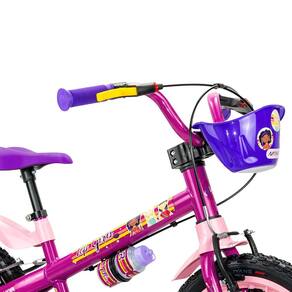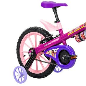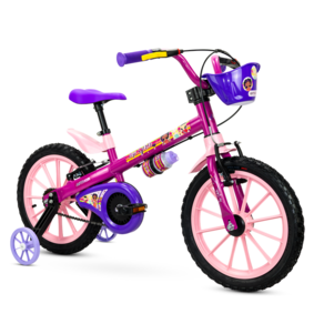 Ficha Técnica Marca: Nathor Modelo: Top Girls Aro: 16 Idade recomendada: 5 a 7 anos Peso máximo suportado: 30 kg Material do quadro: Aço carbono Freios: Dianteiro e traseiro Rodinhas laterais: Sim, removíveis Acessórios: Cestinha frontal e garrafinha Dimensões (CxLxA): 107x53,5x69cm