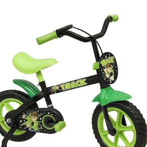 Especificações Técnicas Marca: Track Modelo: Arco Íris PTO Cor: Preto EAN: 7897789498103 Categoria: Infantil Modalidade: Passeio / Dia a dia Gênero: Unissex Aro: 12 Tipo de Aro: Nylon Rodas: Plástico PP Pneus: E.V.A (sem calibragem) Rodinhas de Apoio: Possui Quadro / Guidão: Aço Selim: Nylon com regulagem de altura Manoplas / Pedais: Plásticos Pedivela: Aço Freios: Tambor Corrente: Grossa Movimento Central e Direção: Buchas plásticas Suporte de Guidão: Integrado Suspensão: Não possui Canote do Selim: Não possui Marchas: Não possui Acessórios: Cesto e placa frontal Tamanho do Quadro: 8 Capacidade: 20 kg Peso Bruto: 4,15 kg Público Sugerido: 3 a 4 anos (89 a 107 cm) Medidas do Produto: 57 x 51 x 81 cm Medidas da Embalagem: 33 x 18 x 67 cm Origem: Nacional NCM: 87120010 Garantia: 90 dias