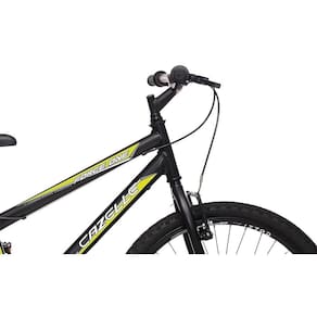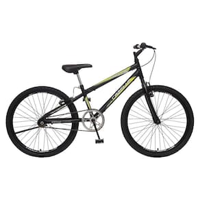 Especificações Técnicas: Quadro Completo Aro 24 Garfo em aço carbono Aro 24 Movimento Direção 22.2m Freios V-Brake traseiro e dianteiro (nylon) Pedivela monobloco 165 x 15mm Movimento central 45mm Cubo dianteiro / traseiro em aço 36 furos Pedal rosca fina 1/2 Preto com refletor Guidão em aço carbono down hill Suporte de guidão Down Hill preto expandido Selim em pvc Aro 24 aero 36 furos Pneus 24 x 1,75 Maçaneta de freio em nylon Manoplas de borracha diplomata Garantia: 03 meses (peças) / 6 meses (quadro)