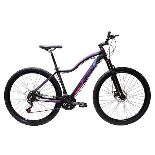 Bicicleta Ksw Aro 29 Feminina Alumínio 21 Marchas Freio A Disco Preto Fos Pink Azul 17