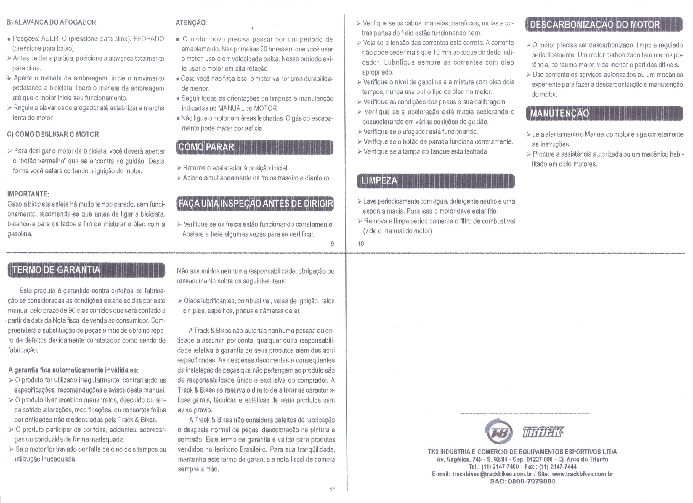 Conta também, com maçaneta V-Brake em alumínio, reservatório de 2 litros, utilizando a mistura de óleo e gasolina, bem como suspensão traseira que proporciona conforto, segurança e comodidade aos usuários.