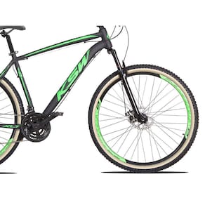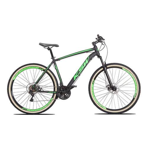 Bicicleta MTB Aro 29 KSW 27 Marcha Freio a Disco Cubos K7 - Cor: Preto+Verde / Tamanho: 17