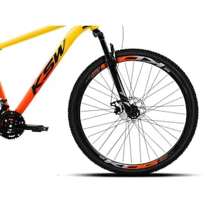 Bicicleta MTB Aro 29 KSW XLT100 2x9 18v Freios Hidráulicos - Cor: Laranja Degradê+Amarelo / Tamanho: 19