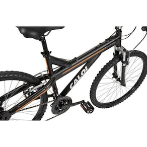 Freio - V-brake Em alumínio Câmbio - Dianteiro: 03 velocidades / Traseiro: 07 velocidades - Shimano TZ Suspensão - Dianteira com 50mm de curso Peso suportado - até 100Kg
