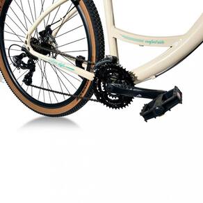 Caracteristicas: 21 Velocidades Alavanca Stef500 Shimano Roda aro 29 aero 36 furos com blocagem Cambio dianteiro puxa por cima 3V TZ500 Shimano Cambio traseiro sem gancheira 7V TY300 Shimano Canote do selim 26.8 Corrente fina 1/2x3/32 Index Descanso lateral regulavel Suspensao Garfo Aro 29 Susp Over Ahead Set 28.6 Guidao Colli Beach Confort Freio - kit freio a disco pinca/disco Movimento Central Blindado 122.5 Caixa de Direcao - Integrado 1.1/8 44/44mm Pedal Free Sport 9/16 Pedivela Triplo aco -24/34/42- Pneu 29x2.20 Tamanho quadro17 Selim Molise Selle Royal Idade recomendada: a partir de 14 anos Peso suportado: 120 kg