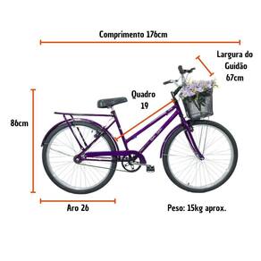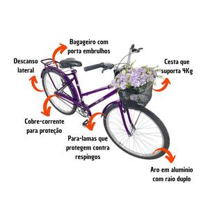 Bicicleta Retrô aro 26' é um modelo clássico, com design retrô, excelente para uso em perímetro urbano e ótimo custo-benefício. Elegância nos passeios, design único, ideal para passear em parques, praias e áreas urbanas. Vem equipada com cesta e bagageiro que possibilita a instalação de cadeirinhas para crianças, sua cesta comporta até 4kg, indicada para transportar pequenos volumes. Suas rodas são montadas com raiação dupla proporcionando maior resistência. Paralama e cobre corrente são acessórios que protegem o ciclista contra respingos em caso terrenos com lamas ou água.