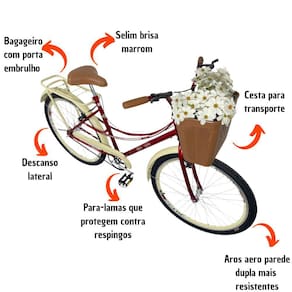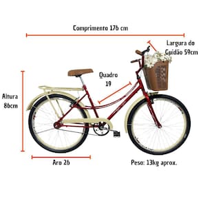 Bicicleta Vintage aro 26'' um modelo clássico, com design retrô. Elegância nos passeios, design único e diferenciado, agrega muito mais sofisticação e originalidade, estilosa ideal para passear em parques, praias e áreas urbanas.