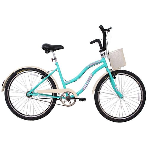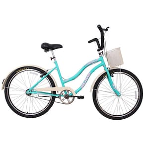 Bicicleta Feminina para passeio com Quadro tamanho 18, Aro 26, Modelo Beach Retrô, marca Dalannio Bike, cor Azul Turquesa.