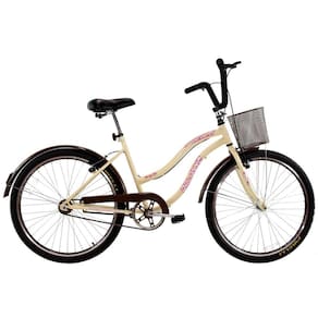 Bicicleta Feminina para passeio com Quadro tamanho 18, Aro 26, Modelo Beach Retrô, marca Dalannio Bike, cor Bege.