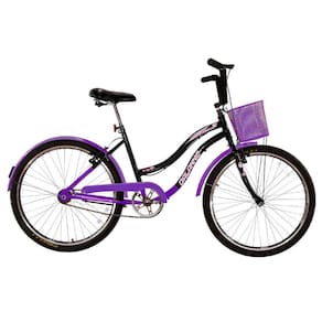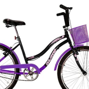 Bicicleta Feminina para passeio com Quadro tamanho 18, Aro 26, Modelo Beach Retrô, marca Dalannio Bike, cor Preto com Lilás.