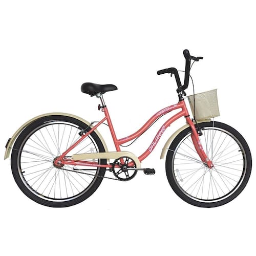 Bicicleta Feminina para passeio com Quadro tamanho 18, Aro 26, Modelo Beach Retrô, marca Dalannio Bike, cor Salmão.