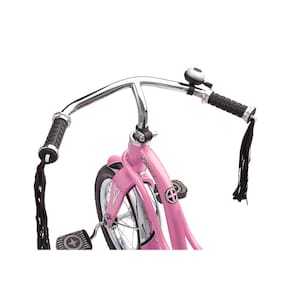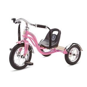 Bicicleta Schwinn Roadster para crianças pequenas, triciclo clássico infantil, estrutura de triciclo de aço de baixa posição com borlas de sino e guidão, deck traseiro feito de madeira genuína, para meninos e meninas de 2 a 4 anos, rosa claro — Design de inspiração vintage e estrutura resistente de triciclo em aço, esta bicicleta possui um baixo centro de gravidade, garantindo uma condução fácil e perfeita para jovens ciclistas, recomendada para crianças de 2 a 4 anos anos de idade - As porcas e parafusos necessários para a montagem são, em sua maioria, pré-instalados, enquanto a braçadeira para o guidão e o assento é enviada em uma caixa de hardware incluída no assento - O deck traseiro é feito de madeira genuína com o logotipo Schwinn queimado, enquanto os para-lamas cromados recortados proporcionam uma viagem moderna - Ande com estilo com barras cruzadoras em estilo bigode, uma campainha de bicicleta clássica e borlas de tecido esvoaçante, enquanto o assento esculpido ajustável pode ser movido para frente e para trás com cinco posições de travamento - Vem pronto para ser montado, para garantir o ajuste adequado da medida mínima da criança a partir do a parte inferior das costas até o chão precisa ter no mínimo 18 polegadas para poder alcançar a extensão total do pedal