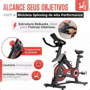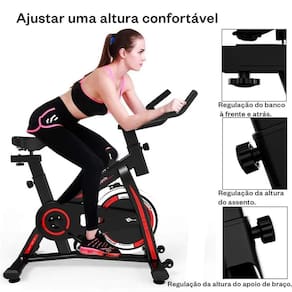 Bicicleta Spinning Ergométrica com Monitor 150kg Cor: Preto Tipo: mecânica A Bicicleta Ergométrica Mecânica é a solução ideal para quem deseja adotar um estilo de vida mais saudável. Ela possui um design moderno e ergonômico, além de recursos avançados, que permitem que você realize exercícios de alta intensidade sem o risco de lesões. Ela também é equipada com um sistema de resistência de alta qualidade para proporcionar uma experiência de treino segura e eficiente. Com a Bicicleta Ergométrica Mecânica, você pode alcançar seus objetivos de saúde e fitness, melhorar seu bem-estar e manter-se em forma. A resistência mecanica proporciona ao usuário um maior controle, durabilidade e menor ruído, além de reduzir a necessidade de manutenção. Além disso, é possível ajustar facilmente o nível de resistência para obter um treino mais intenso ou para simular a sensação de pedalar em diferentes terrenos. Excelente opção para quem procura praticidade e versatilidade, ela é ajustável para usuários de diferentes estaturas e é capaz de suportar até 150kg de peso. O guidão, o assento e as correias dos pedais podem ser regulados, proporcionando maior segurança e conforto durante os treinos. - Guidão ajustável - Correias de pedal ajustáveis - Assento ajustável - Suporte para garrafa dágua - Possui rodas na base que facilitam o transporte Cor: Preto Material: Ferro, plástico, espuma, material sintético Tipo de bicicleta: Spinning Tipo de resistência: Mecânica Funções do display: Scan, tempo, velocidade, distância, calorias, hodômetro, batimentos cardíacos Alimentação do display digital: 2 pilhas AAA não incluídas Peso da roda da inercia: 15kg Peso máximo suportado: 150 kg Inclui: 1 Bicicleta Ergométrica Mecânica Lembre-se Fazer um aquecimento antes dos exercícios é importante para preparar o corpo para a atividade física que está por vir. O aquecimento aumenta a temperatura corporal e ajuda a aumentar a flexibilidade, a força muscular e a resistência. Também aumenta o fluxo sanguíneo e a circulação para os músculos, reduzindo o risco de lesões. O aquecimento também ajuda a melhorar o desempenho durante o exercício e aumenta a motivação para começar a atividade. Dimensões do produto: Constam nas imagens Imagens ilustrativas. As tonalidades podem variar. Valor referente à 1 uma unidade.