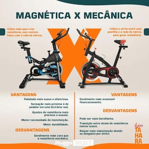 Bicicleta Ergométrica Spinning Profissional Magnética Inércia de 20Kg Suporta até 160Kg e altura de 2m - Pluggei Select by Lojas Tahara Os seus dias de preguiça acabam de chegar ao fim com essa nova Bicicleta Ergométrica Pluggei Select by Lojas Tahara Lançamento 2025 Robusta, prática e adequada para diferentes tipos de treinamento, essa bicicleta permite que você pratique o Spinning, uma das atividades mais completas para fazer em casa ou na academia. O ajuste de resistência ou da altura do banco e do guidão garantem que você se sinta confortável enquanto pratica seus exercícios favoritos, tornando o treino um momento prazeroso e gratificante Confira tudo o que você precisa saber sobre esse produto: - Tipo de Resistência: Magnética. Utiliza ímãs para criar resistência, sem contato físico com a roda de inércia. Oferece uma pedalada mais suave e silenciosa, a sensação de pedalar em uma bicicleta, permite ajustes de resistência mais precisos e suaves, e requer menos manutenção tendo uma durabilidade maior. - Inclui painel com múltiplas funções: Velocidade, Distância, Hodômetro, Calorias e Pulso/Batimentos cardíacos com alimentação via pilha AA pilha não inclusa . - Possui um suporte para celulares que permite que você assista a vídeos de exercícios ou curta músicas enquanto pedala. - A bicicleta suporta até 160kg e 2m de altura. - A roda de inércia alcança até 20kg. - A altura do guidão, altura do assento e a distância do assento são ajustáveis. - Possui suporte para garrafinhas de água - Pedal de metal com presilha que é ajustável - Acompanha Kit de instalação de parafusos e chaves Dimensões do Produto: - Comprimento de uma base a outra: 88cm - Altura Máxima do guidão: 115cm - Largura: 49cm - Altura Máxima do banco: 99cm - Distância Máxima do banco ao guidão: 83cm Obs: Para mais detalhes consultar as medidas detalhadas que constam nas imagens Incluído na embalagem: - 1 Bicicleta Spinning Ergométrica - 1 Kit de instalação e montagem, com parafusos e chaves - 1 Display Digital Com essa bicicleta, você pode finalmente realizar o sonho de ter uma vida fitness, tudo isso sem sair de casa. Não perca tempo e adquira já a sua Imagens ilustrativas. As tonalidades das cores podem variar levemente. Os produtos são medidos manualmente, podendo haver pequenas variações nas medidas. Dependendo do lote, o revestimento de plástico do produto pode vir ou não com pequenas marcações. As imagens contendo a nossa marca Pluggei Select e Lojas Tahara são apenas ilustrativas, para proteção de direitos autorais. Marca: Não Informado Ean: 7898976285353