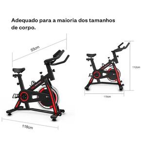 Cor: Preto Material: Ferro, plástico, espuma, couro sintético Tipo de bicicleta: Spinning Tipo de resistência: Mecânica Funções do display: Scan, tempo, velocidade, distância, calorias, hodômetro, batimentos cardíacos Alimentação do display digital: 2 pilhas AAA não incluídas Peso da roda da inercia: 15kg Peso máximo suportado: 150 kg