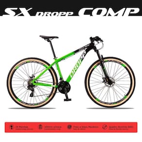 A Bicicleta SX Comp Aro 29 Quadro em Alumínio 24 Marchas Freio a Disco Mecânico é a opção certa para você que pretende adotar um estilo de vida mais saudável. Seja para passeios urbanos, trilhas leves, ou até como seu principal meio de , a bicicleta pode trazer inúmeros benefícios para a sua saúde, além de uma qualidade de vida garantida. A Mountain Bike SX Comp Dropp é produzida em quadro ergonômico de alumínio e possui e tamanhos para você escolher. Além disso este equipamento oferece um desempenho incrível em área urbana e íngreme pois foi desenvolvida com componentes super importantes para uma boa performance, possui suspensão dianteira para absorção de impacto e também é capaz de combinar 24 velocidades com câmbios e trocador Dropp 3x8 com manetes que oferece ótimo desempenho em terrenos elevados. Já o freio a disco mecânico proporciona muito mais e tranquilidade nas frenagens. Invista em sua saúde mental e corporal, afinal pedalar é vida! Compre já!