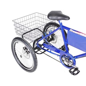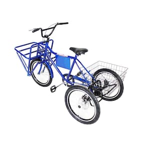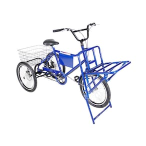 Este modelo de bicicleta cargueira com acoplamento do kit triciclo é utilizado para locomoções e transporte de carga para qualquer tipo de situação, e também muito utilizados na logística e movimentação interna de empresas e indústrias, garantindo operações com transporte recomendado de até 60 kg de carga + condutor, possui ótima mobilidade e acessibilidade aliado com a segurança.Bicicleta Triciclo em aço reforçado com pintura eletrostática, modelo contendo cavalete, contendo bagageiro na dianteira e cesta aramada traseira, sendo rodas aro 20” dianteira e aro 20” traseira street (folha dupla em alumínio e raio grosso), duplo freio a disco mecânico traseiro, manetes em alumínio, guidão aço com travessa reforçada, mesa de guidão 4 parafusos, selim 2 molas, relação com sistema de catraca diferencial traseiro TTS, pedal alumínio, protetor de coroa e paralama dianteiro.