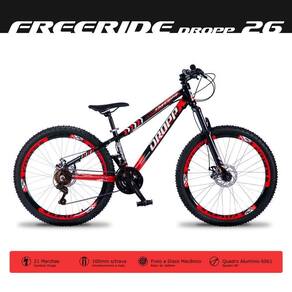 A Bicicleta Freeride Aro 26 Quadro em Alumínio 21v com Freio a Disco Mecânico é um equipamento voltado para o público jovem, pois possui design descolado e quadro rebaixado. A Bike Freeride da Dropp é produzida em quadro ergonômico de Alumínio e possui para você escolher. Além disso a bike oferece um bom desempenho em área urbana pois foi desenvolvida com componentes super importantes para uma boa performance, conta com suspensão dianteira com amortecedor a mola para absorção de impactos e também é capaz de combinar 21 velocidades com trocador Rapidfire que facilita a troca de marchas. Já o freio a disco mecânico proporciona muito mais e tranquilidade nas frenagens. Invista em sua saúde mental e corporal, afinal pedalar é vida! Compre já!