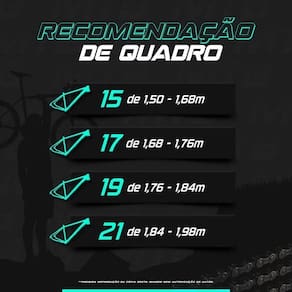 - A geometria do quadro (desenho) pode mudar conforme o tamanho escolhido alterando a inclinação do tubo superior.