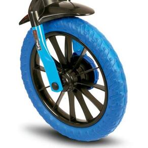 O modelo Veloz possui limitador de giro do guidão, importante característica que evita que o guidão dê uma volta completa e danifique o freio, preservando a integridade física da criança.