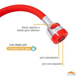 Bico Arejador Duplo Jato Abs Vermelho e Cromado para Torneira Gourmet